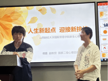 为了提高同学们的心理健康水平,传授心理调适技巧以及促进学生个人成长与发展,9月24日18:30,7790cnm必发集团邀请了国家二级心理咨询师傅霞副教授,开展了以“人生新起点,迎接新挑战”为主题的心理健康讲座,2024级辅导员王锦及130余名新生参与。