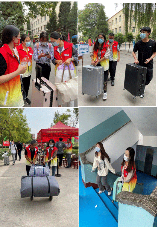 对于这次特殊的“迎新”,老师们在前期就进行了充分的准备,安排在宿舍楼前的物资领取处、运送行李的小推车、校园中随处可见的迎新条幅、更快传递物品的电动自行车等等,都让迎新工作开展的更加有序且便捷。