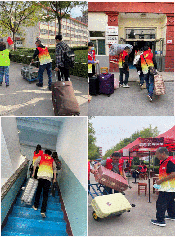 “还来不及感受与父母离别的惆怅,行李就被热心满满的教师志愿者拖走了~”