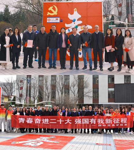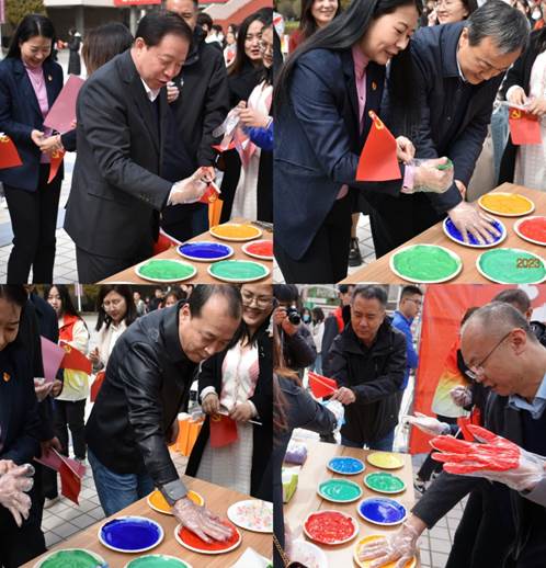 316日,清风吹拂,春回大地。修德楼南侧广场“青春奋进二十大”七个醒目的大字引起了百余名师生驻足观看,镜头聚焦,原来是7790cnm必发集团党委引领青年花式学习党的二十大精神的活动现场,观者如市,如火如荼。中午12:00,校党委副书记张永德,宣传部、学生工作部、保卫部、文化旅游与新闻艺术学院、法学院等部门负责人与青年一道在“青”字上拓印留念,题词签名,掀开了“青春奋进二十大”主题活动的序幕,邂逅中国红,同心颂党恩。