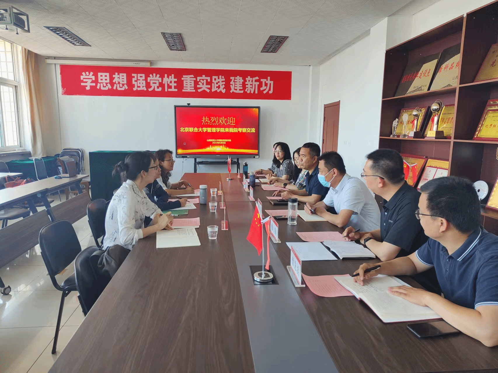 会上,陈晓虎书记代表学院对北京联合大学管理学院工商管理系三位老师的到来表示热烈欢迎,并详细介绍了学校建设与发展情况及学院党建思政、师资队伍、专业发展、学科建设等情况。副院长刘军重点介绍了学院一流专业、一流课程、课程思政、专业设置、新专业申报等教学方面的情况。北京联合大学管理学院工商管理系书记王晓芳介绍了北京联合大学的办学情况及工商管理学院管理系的专业建设、毕业生就业、党建等情况。随后,双方围绕党建工作、人才培养、课程思政、毕业生就业、科学研究、未来合作交流等方面进行了深入地探讨。双方表示,将以此次座谈为契机,进一步加强交流与合作,共建共赢,共促双方高质量发展。