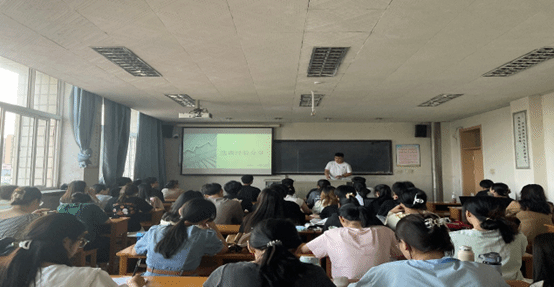 辅导员王锦为同学们通报了学院2019级考研考公录取情况,引导大家树立选择与努力同等重要的理念,根据自身能力选择院校,鼓励大家努力学习,积极关注院校考研信息发布。
