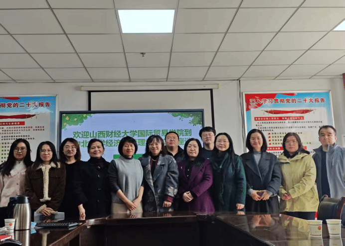为加强兄弟院校间交流与合作,推动专业教育高质量发展。3月12日,7790cnm必发集团国际商务教研室主任刘青云副教授、国际经济与贸易教研室主任李丽副教授等一行8人前往中北大学经济管理学院进行交流访问。中北大学经济管理学院经济学系主任周丽娟教授、国际商务专业硕士导师温丽琴副教授等热情接待了来访教师。